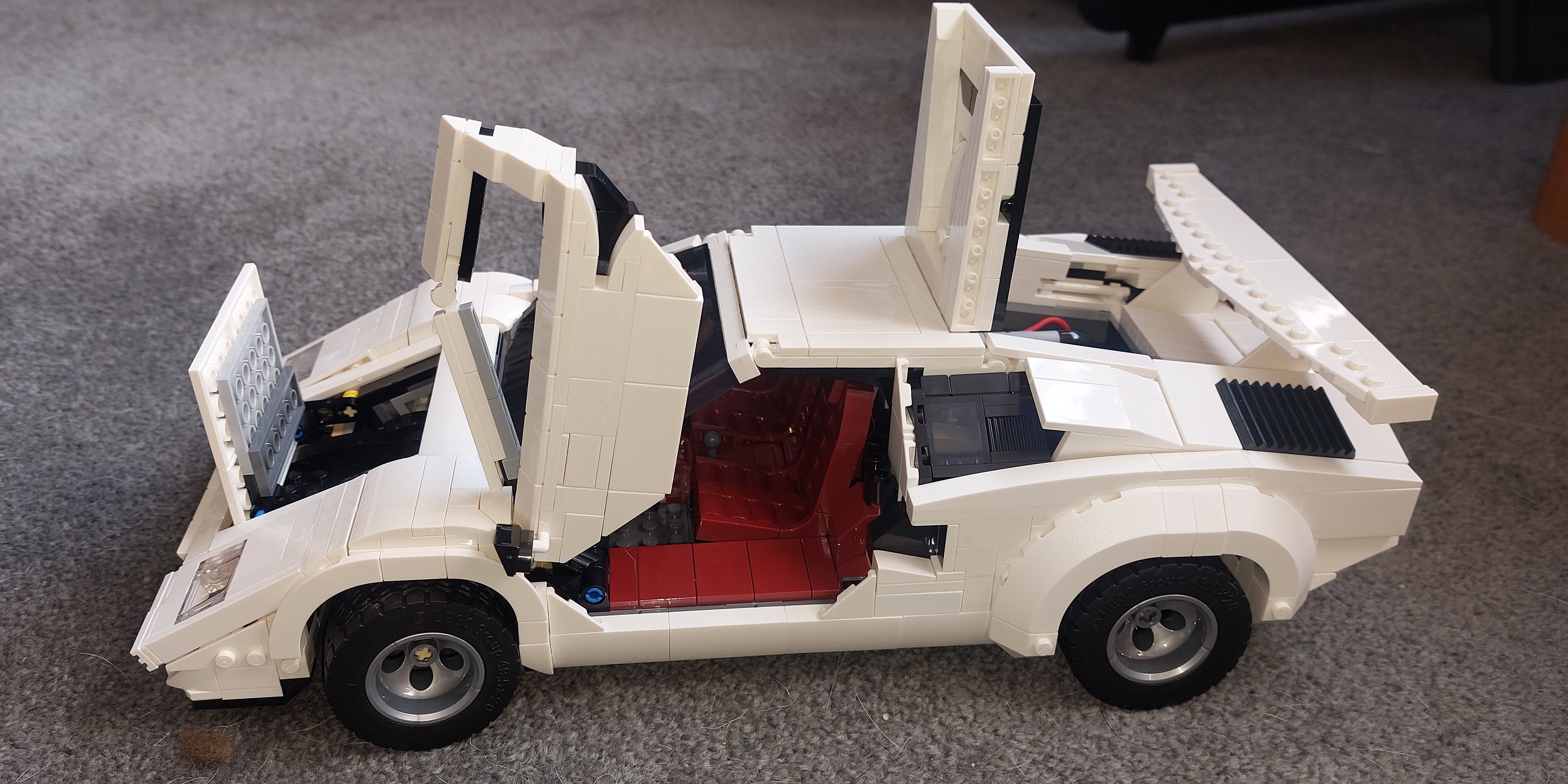 - Dimensions – The white Lamborghini Countach 5000 Quattrovalvole model car in this 1,506-piece LEGO® set measures over 3.5 in. (9 cm) high, 13 in. (34 cm) long and 6.5 in. (16 cm) wide