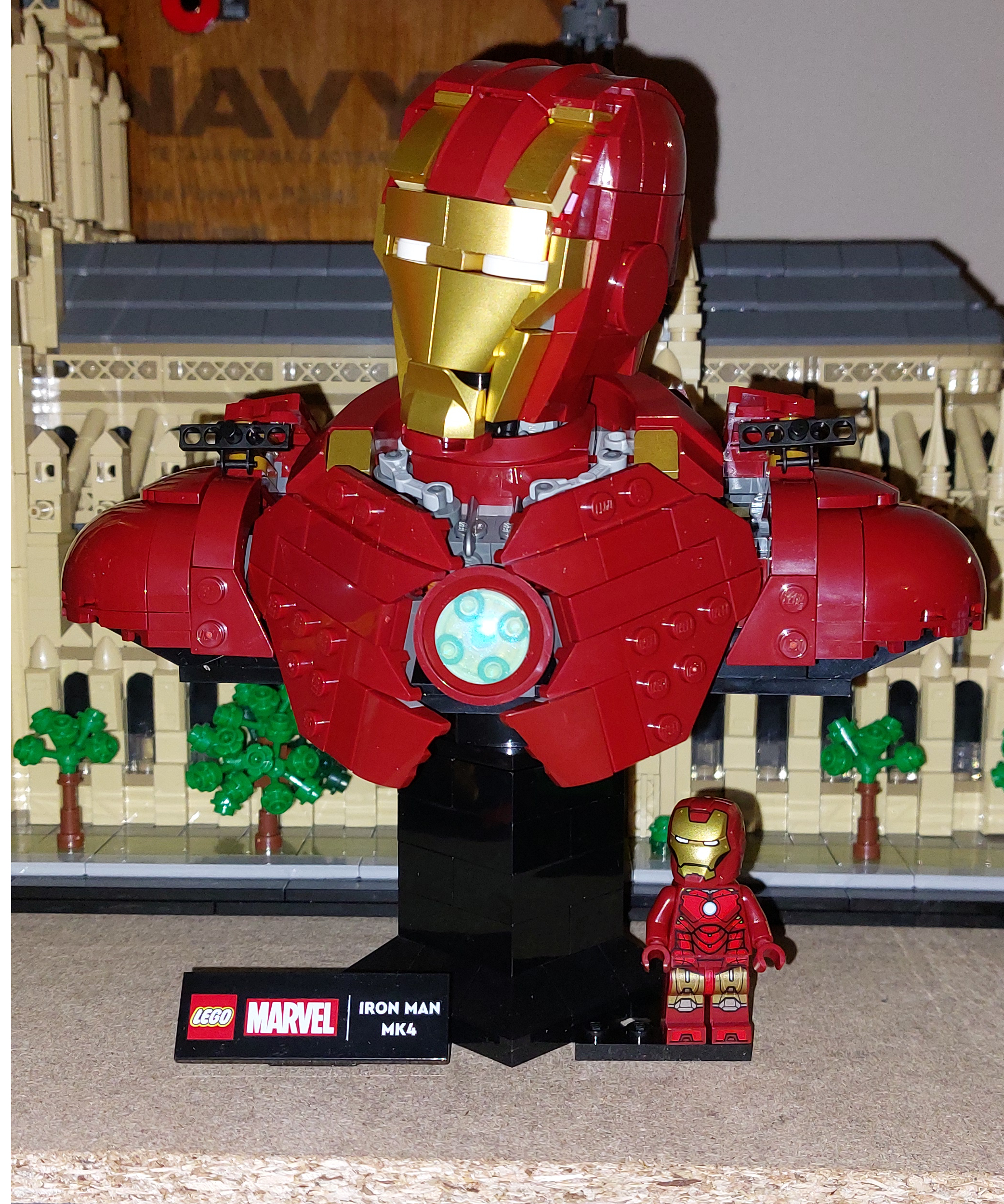 • LEGO® ǀ Marvel Iron Man figure for adults – Iron Man MK4 Bust is a collectible, build-and-display set for experienced model-makers and adult Super Hero enthusiasts