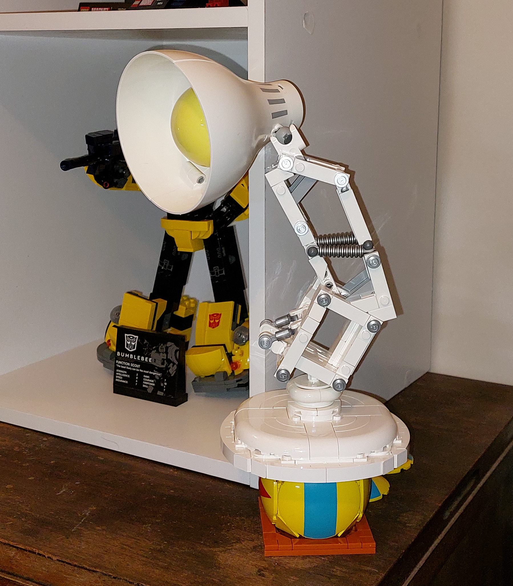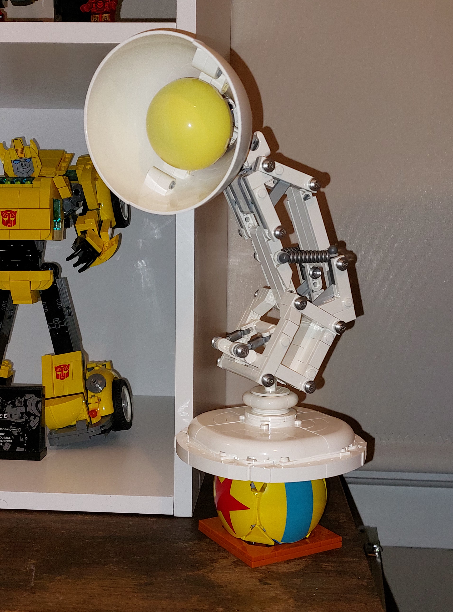 • Fun display option – Remove 2 rounded plates from either side of the Pixar Ball to create a base for Luxo Jr. to stand on, as if it is deflating the Pixar Ball
