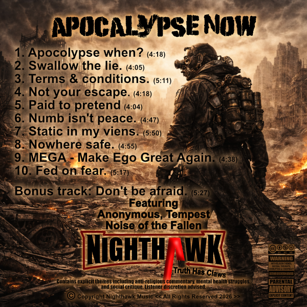 Apocalypse Now: Mix of Heavy Rock and Metal songs from Nighthawk, Anonymous, Noise of the Fallen & Tempest/Nighthawk as Producer.